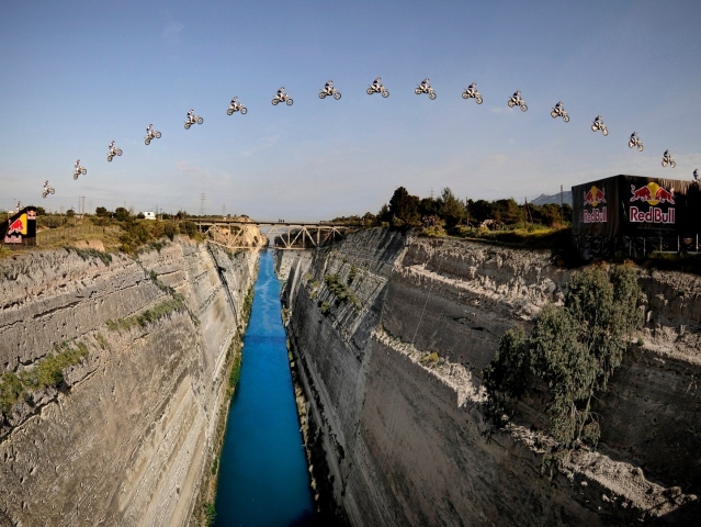 Poloostrov Peloponés je od zbytku Řecka oddělen umělým kanále Korint. Ten byl vytesán z usazené horniny po aktivní seismické činnosti v roce 1890. S hladinou o šířce pouze 21 metrů, je již příliš úzký pro obchodní námořní dopravu. Ovšem pro Robbieho to byla jasná výzva. Hned na první pokus vytvořil světový rekord nejdelšího skoku na motocyklu s délkou 106 metrů. A jelikož stěny vyhloubeného koryta jsou vysoké 80 metrů, Maddison dosáhl také druhého rekordu za nejvyšší skok ve výšce 95 metrů nad vodní hladinou.