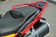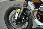 Převodovka má šest rychlostních stupňů, přičemž ty první čtyři jsou krátké, zbylé dva jsou spíše pro dálniční přesuny. Trochu mi tam chybělo při zařazení prvního stupně slyšitelné cvaknutí, tak nějak mi to k těm vibracím a k celkovému stylu motocyklu patří. Spojka jde lehce a její páčka stejně jako brzda je snadno nastavitelná ve čtyřech úrovních. Brzdy Brembo jsou dostatečně silné, mají okamžitý nástup, ale nejsou kousavé jako u supersportu a nemají tendenci tuhnout. Můžete se na ně kdykoliv plně spolehnout i při jízdě v terénu.