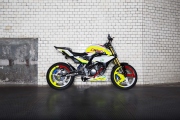 Na jeho vývoji se podílel známý motocyklový kaskadér Chris Pfeiffer a tak můžeme na tomto stroji najít několik doplňků, které se budou hodit hlavně jezdcům, zabývajícím se stuntridingem. První z nich je uzamykatelná plynová rukojeť, aby se jezdec bez obav mohl pustit pravého řídítka. Dále tu najdeme speciální vývod ovládání zadní brzdy na levé straně řídítek a také je větší zadní brzdový kotouč. Doplněny byly také dva páry stupaček, jedny jsou umístěny na ose předního kola, ty druhé těsně za sedlem, které je mimochodem potaženo protiskluzovým materiálem. V zadní části motocyklu nalezneme hliníkovou hrazdu.