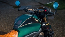 Čtyřválcový motocykl CB750 ‘K0’, který stál u zrodu moderní éry motocyklů, ohromil v roce 1969 celý svět. A CB650R KarbOne od firmy AZ Motos se svým zlatým metalickým lakem se uctivě sklání před svým slavným předchůdcem. Za vznikem zakázkových dílů z uhlíkových vláken, jako je například zadní sedlo či rámeček předního světlometu, stojí firma SEB Auto Shop; úžasné černé ráfky (s chromovanými paprsky) pocházejí od firmy Evo-X Racing a jsou obuty do pneumatik Dunlop Mutant. Motor, řídítka, zadní tlumič a kryt vačkových hřídelů jsou lakovány černým epoxidovým lakem Topema, zatímco všechny doplňky jsou běžně dostupné u výrobců jako Puig a Chaft.