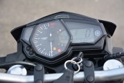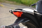 Díky výše umístěným řídítkům sedíte za kokpitem vzpřímeně, pohodlně a nemá to žádný vliv na sportovní styl vaší jízdy. Sedlo je umístěno ve výšce 780 mm, naprosto v pohodě dosáhnou na zem i menší jedinci. Multifunkční přístrojový panel je složen ze dvou částí. Vlevo máte klasický analogový otáčkoměr, vpravo je digitální rychloměr, který vám navíc ukazuje množství paliva, hodiny, dvě denní počítadla kilometrů a také zařazený převodový stupeň. Přístrojovka je jednoduše řešená, přehledná a dobře čitelná i když na ni svítí slunce.