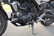Třístovkový motor má velkou chuť do života a pokud si sednete s převodovkou a režimem řazení tak je o zábavu vystaráno. Zhruba do 7,5 tisíc otáček je motor středně točivý a například pro městský provoz ideální. Motor snese i mírné podtočení v nízkých otáčkách bez nějakých trhavých reakcí a zadušení. Nad 7,5 tisíc je cítit všech 42 koní v plné parádě, a pokud si pohlídáte včasné odřazování tak si skvěle užijete na točivých okreskách tak jako my. Cca 156 kg suché váhy jde krásně přehazovat bez známky odporu, s čímž koresponduje i užší profil zadní pneu 140/70-17.
