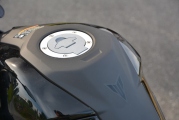 Do palivové nádrže vám vejde 14 litrů benzínu, což je dostatečné množství. Přiznám se, že jsem ani nijak nekontrolovala moji průměrnou spotřebu, točilo se to kolem čtyřech litrů na sto kilometrů, ale zrovna u tohohle biku mi ten údaj nijak důležitý nepřijde. Pohodlně se vám pojede do rychlosti 130 km/h, takže zvládnete i přesuny po dálnici, ale pak počítejte s tím, že přece jenom budete muset navštěvovat čerpací stanici častěji, než jste zvyklí. Maximální rychlost jsem dostala na 155 km/h a ještě by kousek šla, předpokládám však, že by tu zasáhl omezovač.