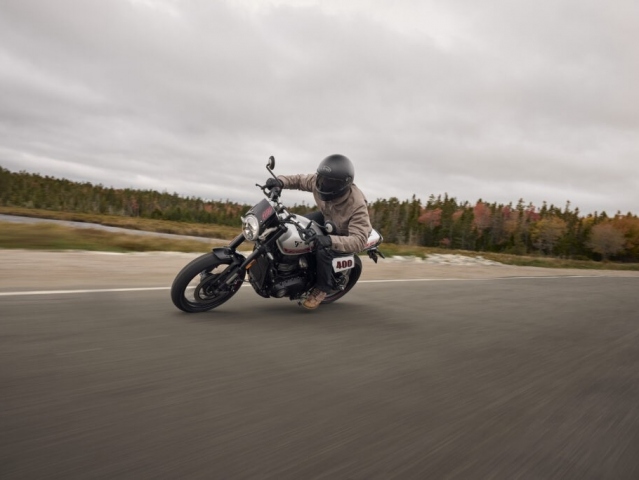 Pro opravdový flat-trackový pocit z jízdy po prašném oválu vybavil Triumph motocykl rovnými, o 23 mm širšími a o 134 mm nižšími řídítky a přesazené jsou také stupačky o 86 mm dále vzad a o 27 mm výš. Palivová nádrž o objemu 13 litrů ve stylu trackeru má vytvarované prolisy pro kolena a navazuje na ni štítek nad kulatým LED světlem. Ve stejné barvě je krovka sedla a to vše ještě dolaďují kola se zdvojenými paprsky v univerzálních pneumatikách Pirelli MT60 RS s hrubým vzorkem. Agresivní sportovní linie skvěle dolaďuje číselná tabulka a dvojice zvýšených výfukových koncovek vzadu.
