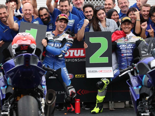Nedělní závod Supersport byl pneumatikovým pokrem: Pouze pět jezdců zvolilo slicky a z toho také čtyři v cíli profitovali! Albert Arenas (Yamaha), Andrea Giombini (MV Agusta), Aldi Mahendra (Yamaha) a jezdec českého týmu Wepol WRP Matteo Ferrari (Ducati).