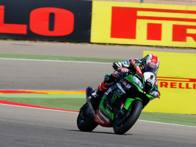 Na stupních vítězů ho doplnili Marco Melandri (Ducati) a Tom Sykes (Kawasaki). První závod v Aragónu byl dle očekávání dominantním soubojem Chaze Daviese (Ducati) a Jonathana Rey. Na jeho konci získal tovární pilot Kawasaki páté vítězství v řadě. Český jezdec Ondřej Ježek kvůli crashi a následujícímu zranění v závodě bohužel nestartoval.