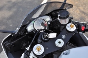 Na R6 se musí zvláště jezdci vyšších postav pěkně poskládat a sedět vzadu na minimalistickém sedátku je pouze pro spolujezdce-masochisty. Jinak ergonomii ovládání i jezdcovu posazu není co vytknout. Kokpit s přístojovou deskou zůstaly v nezměněné podobě, zde jasně dominuje velký a přehledný analogový otáčkoměr doplněný po bocích digitálním informačním panelem. Lehkost tohoto stoje je tedy znát na každém detailu a pohotovostní hmotnost pouhých 189 kilogramů to jasně potvrzuje.